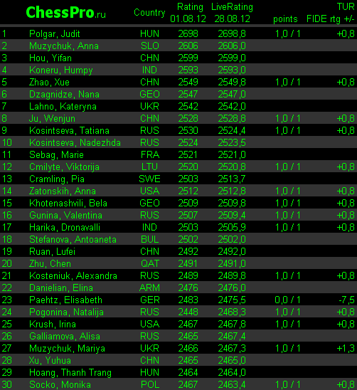 22. WGM Pogonina Natalija RUS 2447 – 8